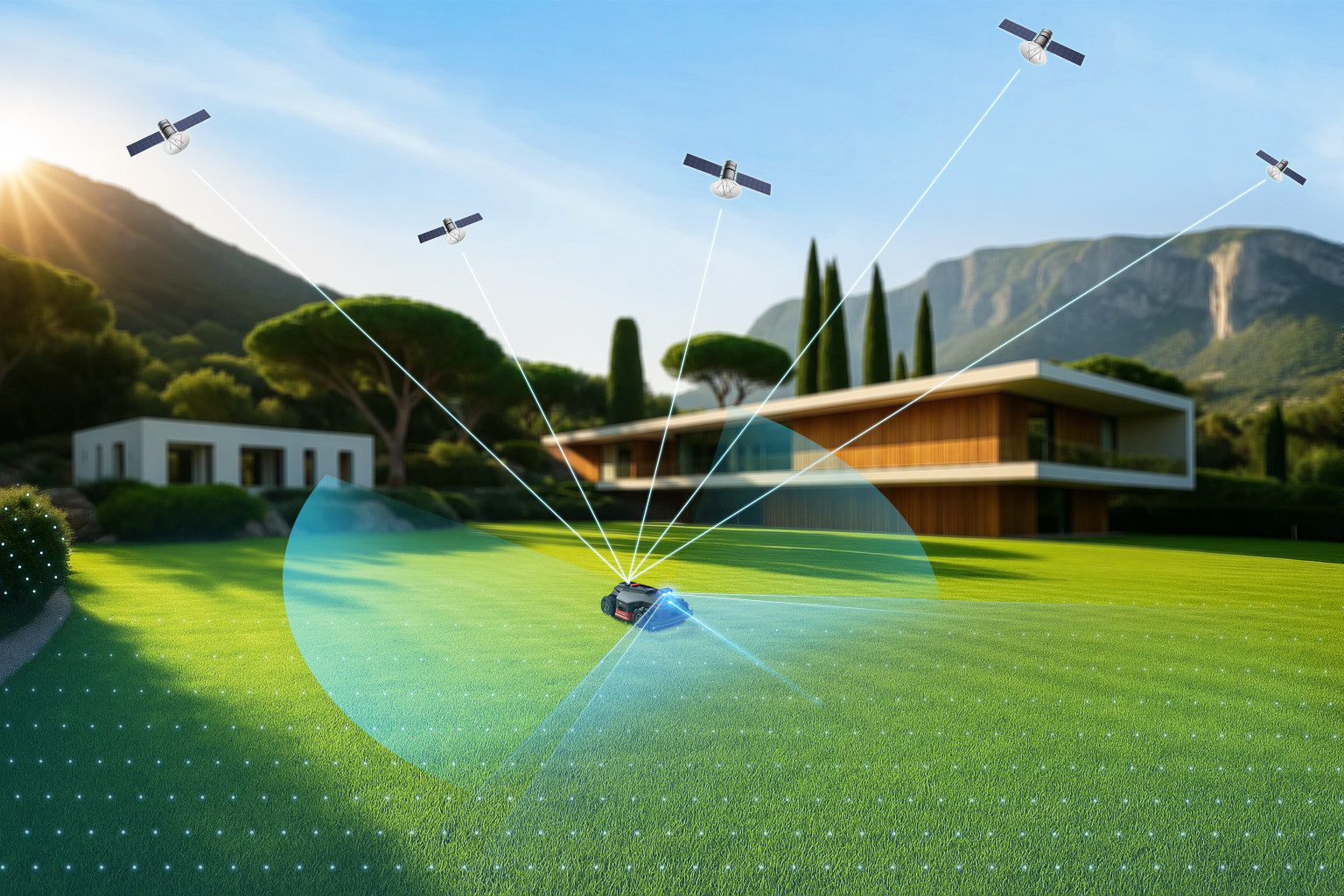 针对这些痛点,MOVA与华测导航创新性推出“星基RTK + 双目视觉 + 激光雷达”融合导航方案。该方案以有网无网均可用、免流量、全球覆盖的厘米级定位能力,重新定义了智能割草机器人的应用边界。